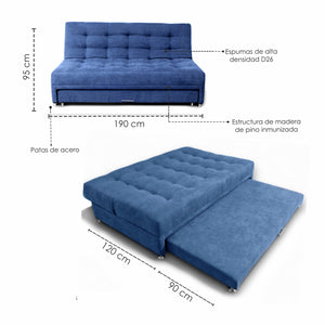 SOFA CAMA TARIMA BROOKE TELA AZUL