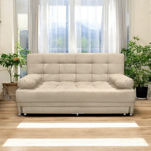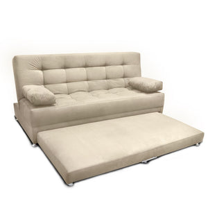 Sofá cama 3 cuerpos y 3 posiciones. Con diseño funcional, ideal para optimizar tus espacios. Tapizado en tela tipo piel de durazno, con espumas de alta densidad y patas en acero. Incluye descansa brazos tipo cojín y cama interna con medida de 90 x 175 cm, la cual resiste una capacidad máxima de 80 kg. Cobertura de envío gratis:
