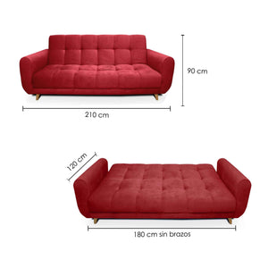 Sofá cama 3 cuerpos y 3 posiciones: modo sofá, reclinado y cama. Con diseño funcional. Ideal para optimizar tus espacios y conseguir el máximo confort, tapizado en tela tipo piel de durazno suave al tacto. Con descansa brazos reforzados para mayor estabilidad y patas en madera. Estructura en madera inmunizada. Espumas de alta densidad. Cobertura de envío gratis: