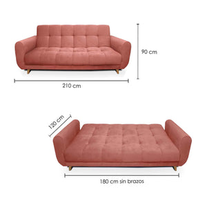 - Metatag description: Sofá cama 3 cuerpos y 3 posiciones: modo sofá, reclinado y cama. Con diseño funcional. Ideal para optimizar tus espacios y conseguir el máximo confort, tapizado en tela tipo piel de durazno suave al tacto. Con descansa brazos reforzados para mayor estabilidad y patas en madera. Estructura en madera inmunizada. Espumas de alta densidad.