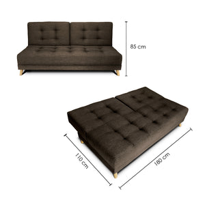 Sofá cama con diseño funcional clic clac independiente. Ideal para optimizar tus espacios, tapizado en tela lino de excelente durabilidad, con espumas de alta densidad para mayor confort y estructura en madera inmunizada reforzada en la base cama para una superior estabilidad y resistencia. Patas terminado tipo madera. Cobertura de envío gratis: