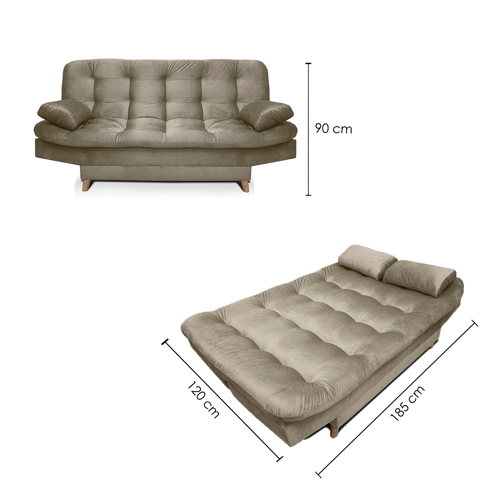 SOFACAMA FENDIK 3 PSC 90X185X120 TELA CAMEL