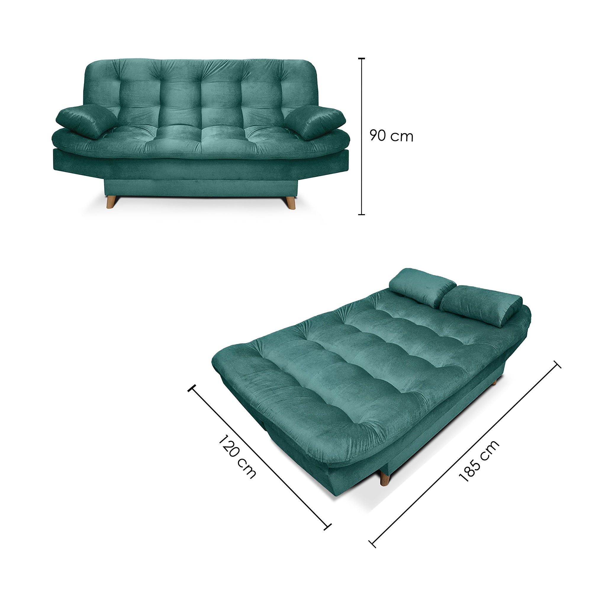 SOFACAMA FENDIK 3 PSC 90X185X120 TELA TURQUESA