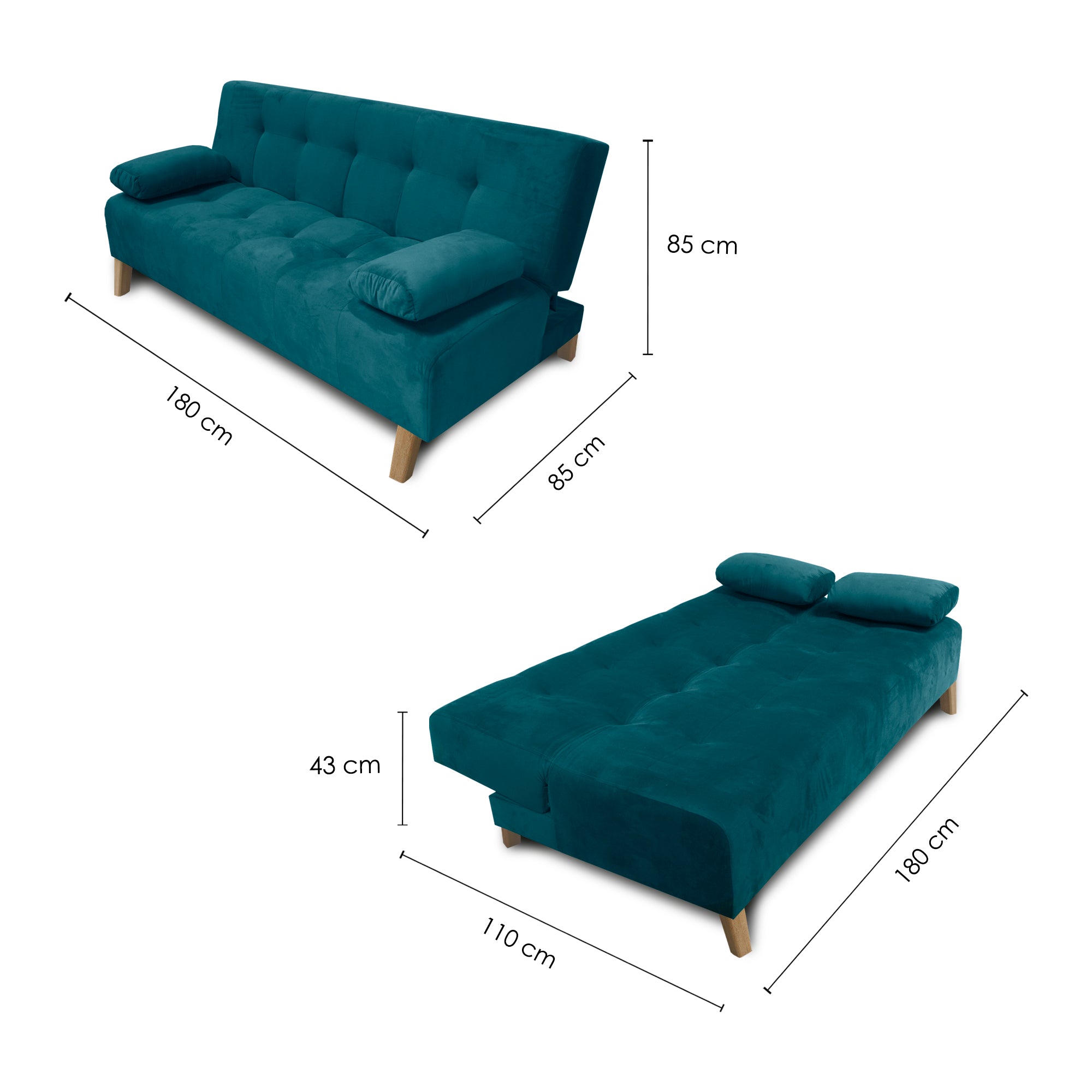 SOFACAMA GLASER 3 POSICIES 180 X 85 TELA TURQUE