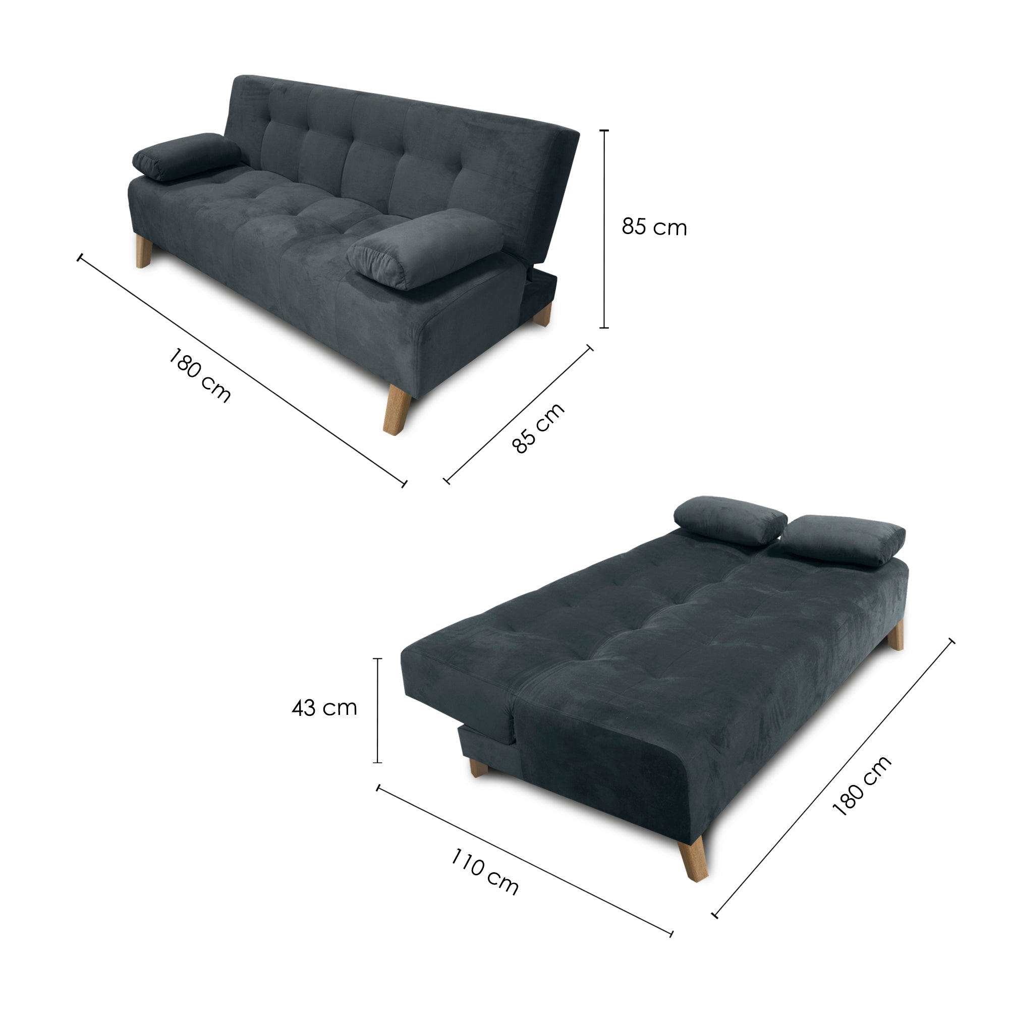 Sofá cama 3 cuerpos y 3 posiciones: modo sofá, reclinado y cama. Con diseño funcional, ideal para optimizar tus espacios. Tapizado en tela tipo piel de durazno con suavidad al tacto. Máximo confort con brazos tipo cojín, espumas de alta densidad y patas en madera. Cobertura de envío gratis: