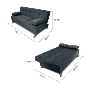 - Metatag description: Sofá cama 3 cuerpos y 3 posiciones: modo sofá, reclinado y cama. Con diseño funcional, ideal para optimizar tus espacios. Tapizado en tela tipo piel de durazno con suavidad al tacto. Máximo confort con brazos tipo cojín, espumas de alta densidad y patas en madera.