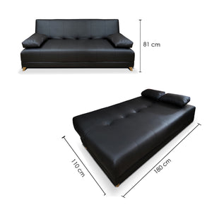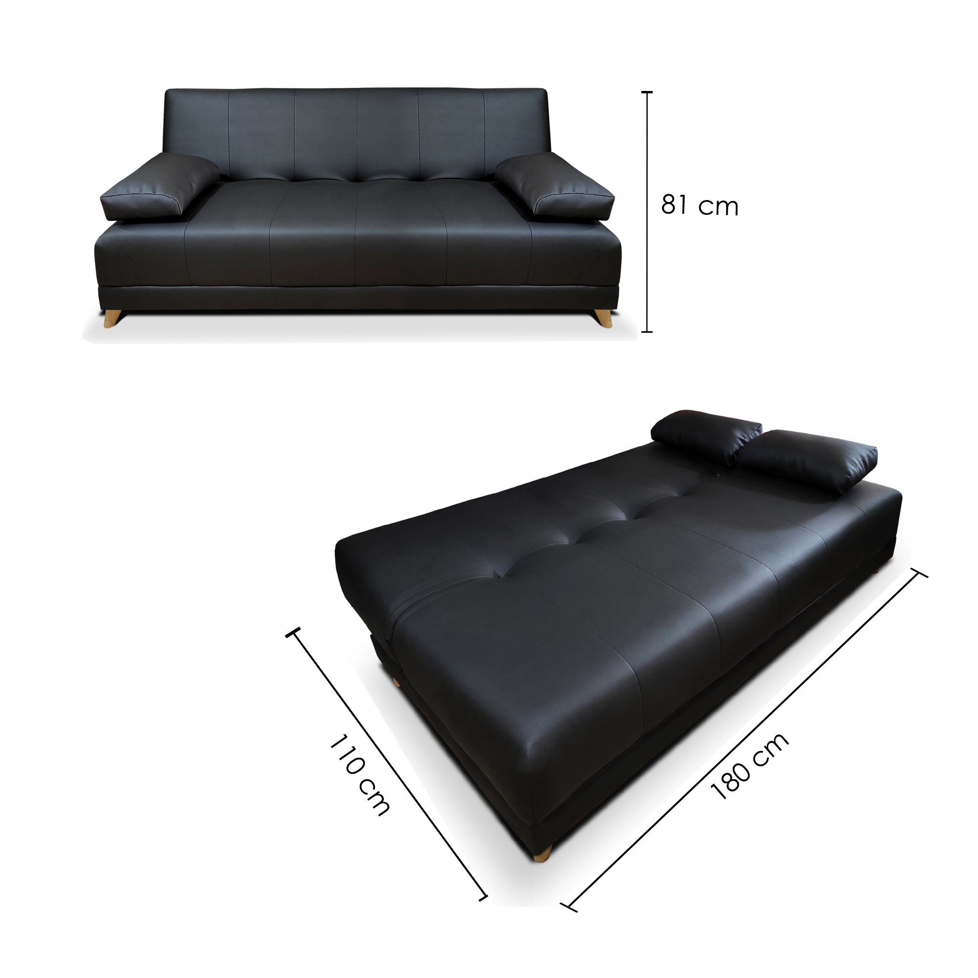 SOFACAMA SABATH 3POS 90X180X110 TIPO CUERO NEGR