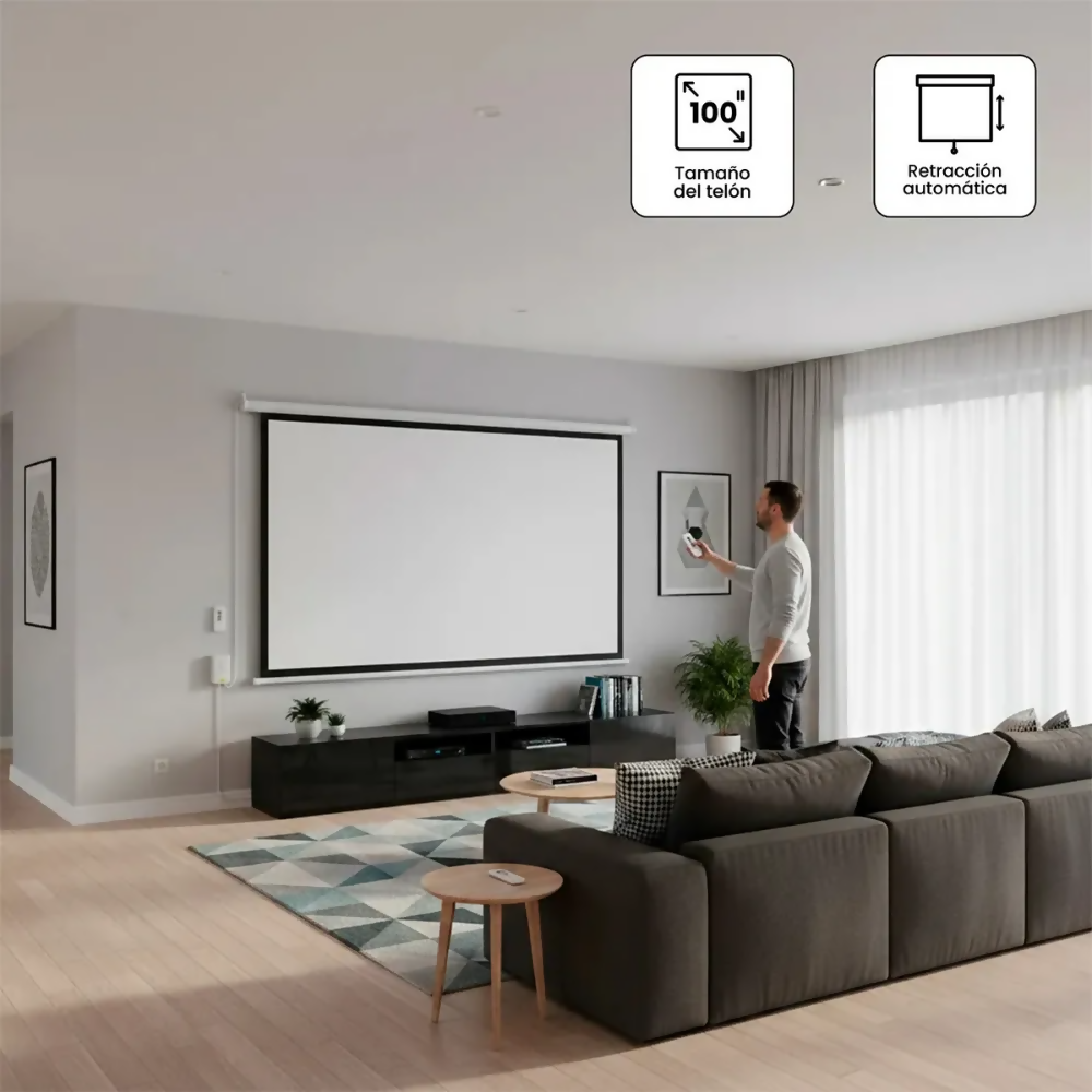 TELÓN PARA PROYECTOR, TELÓN MOTORIZADO, PANTALLA PARA PROYECTOR 100 PULGADAS, PANTALLA PROYECTOR ELÉCTRICA, TELÓN PROYECTOR 16:9, PANTALLA PROYECTOR CON CONTROL REMOTO, TELÓN CINE EN CASA, PANTALLA PROYECTOR HD 4K.